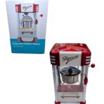 Crispetera eléctrica retro estilo cine americano. Prepara palomitas en 3-5 minutos, con luz interior y diseño decorativo vintage. Ideal para hogar y eventos. El Machetico Colombia.