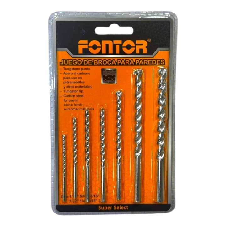 Compra juego de brocas para concreto Fontor en El Machetico. Set con punta de tungsteno para perforar pared, ladrillo y piedra en Cúcuta.