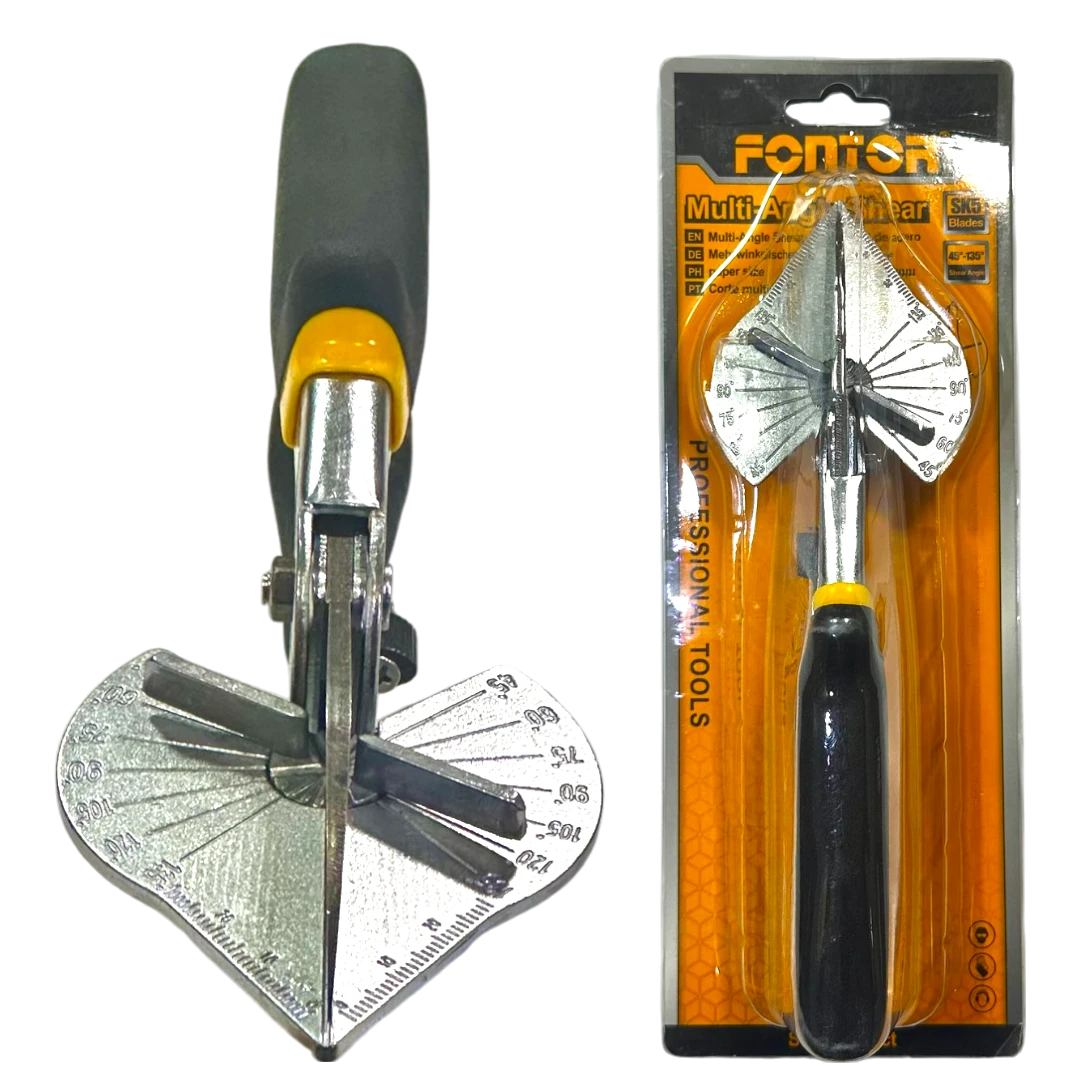 La tijera multiángulo Fontor es una herramienta especializada diseñada para realizar cortes precisos en distintos ángulos, ideal para trabajos de instalación, carpintería liviana, canaletas, molduras, marcos, PVC y perfiles plásticos.