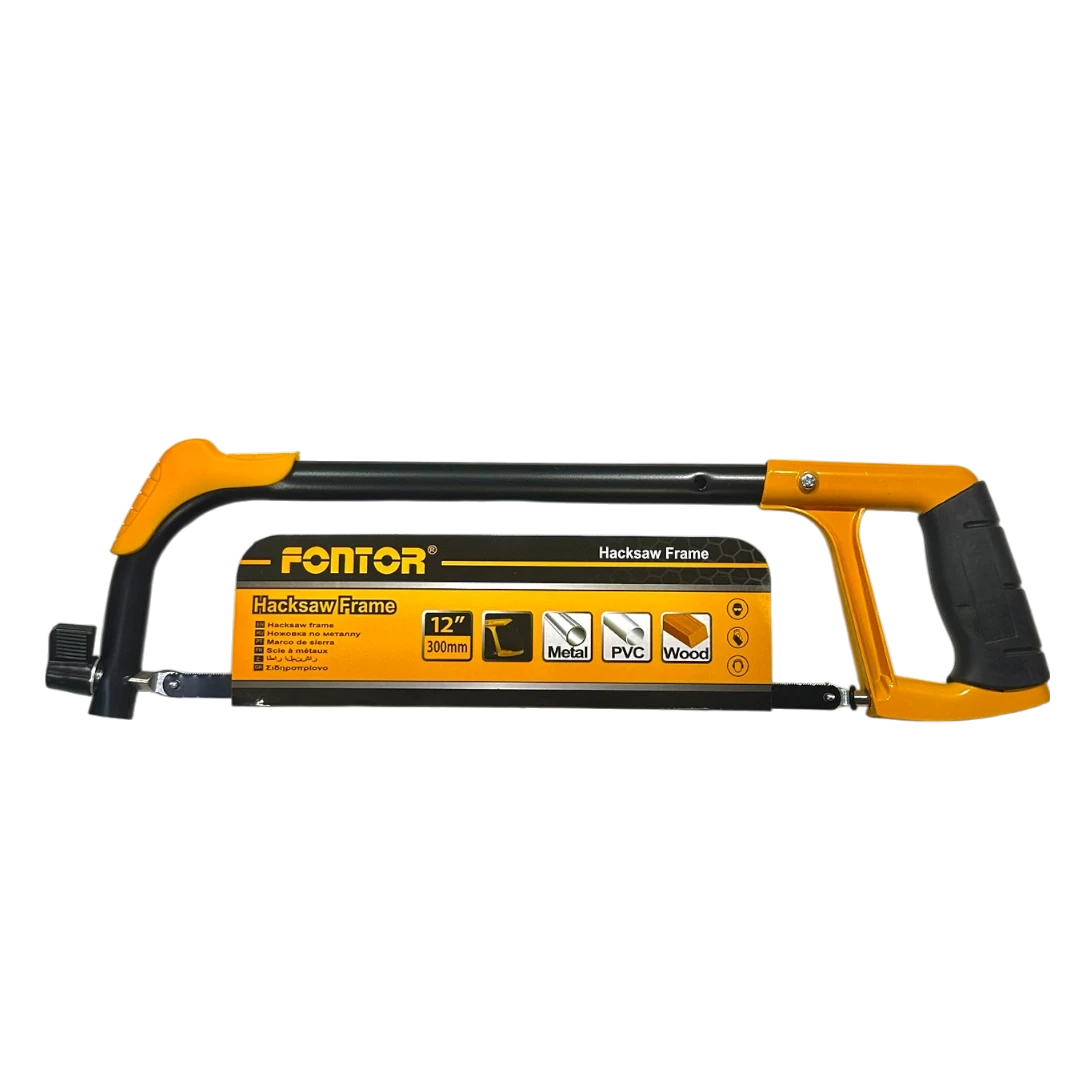 Marco de segueta reforzado Fontor de 12 pulgadas (300 mm). Resistente, cómodo y preciso para cortes en metal, PVC y madera.