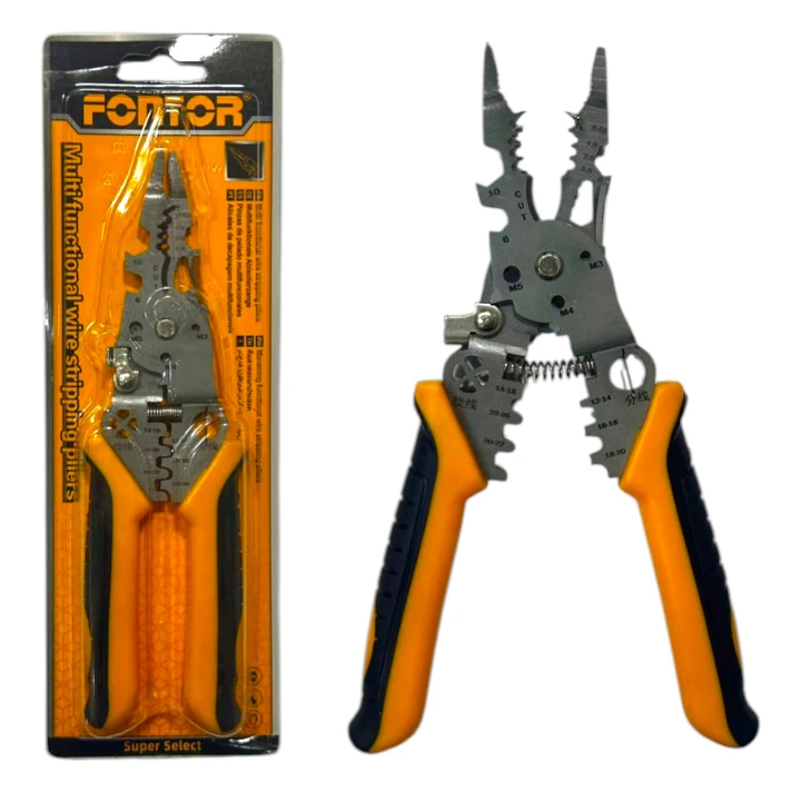 Compra pela cable multifuncional Fontor en El Machetico. Pinza profesional para pelar, cortar y crimpar cables envíos seguros a todo Colombia.
