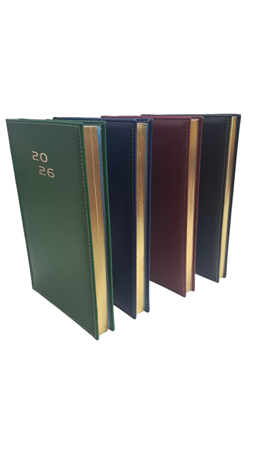 Agenda ejecutiva 2026 con pasta sintética en colores surtidos. Formato día por página, ideal para oficina, negocios y uso personal